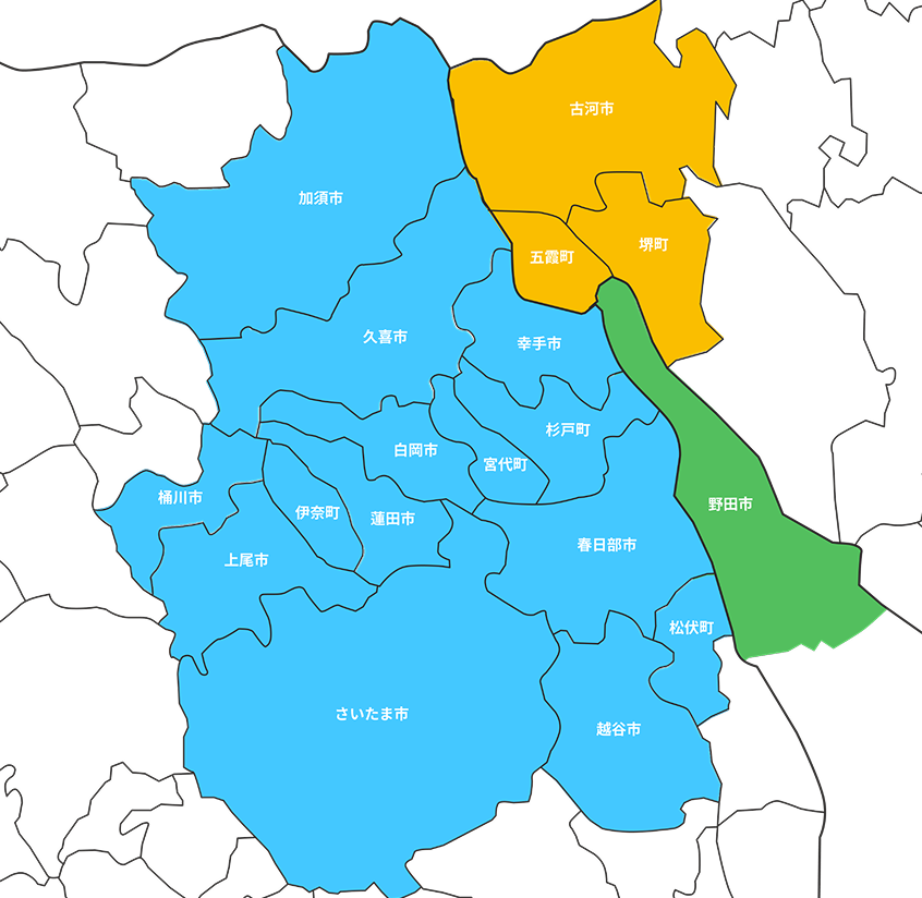 埼玉県杉戸町を拠点に、春日部・久喜・宮代・幸手・白岡・蓮田・さいたま市などの地域で多数の施工実績があります。